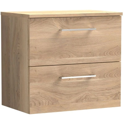 Nuie Arno Wall Hung 2 Drawer Vanity Unit with Worktop 600mm Wide Bleached Oak