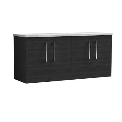 Nuie Arno Wall Hung 4 Door Vanity Unit with Bellato Grey Worktop 1200mm Wide Charcoal Black Woodgrain