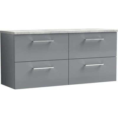 Nuie Arno Wall Hung 4 Drawer Vanity Unit with Bellato Grey Worktop 1200mm Wide Satin