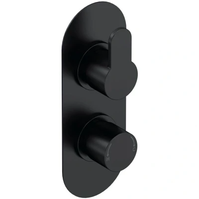nuie ARV4TW01 Arvan Modern Bathroom Concealed Round Twin Thermostatic Shower Valve, 215mm, Matt Black