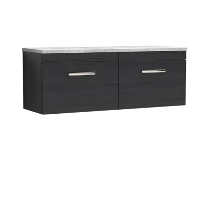 Nuie Athena Wall Hung 2 Drawer Vanity Unit with Bellato Grey Worktop 1200mm Wide Charcoal Black Woodgrain