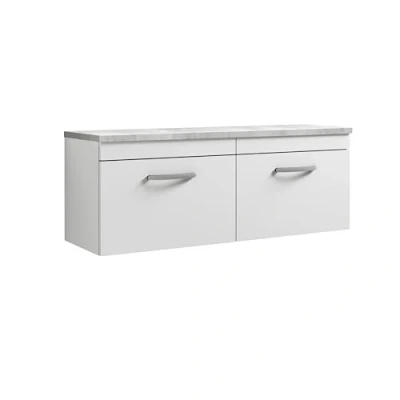 Nuie Athena Wall Hung 2 Drawer Vanity Unit with Bellato Grey Worktop 1200mm Wide Gloss White