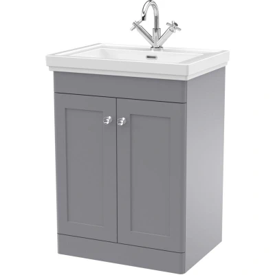 Nuie Classique Floor Standing 2 Door Vanity Unit with Basin 600mm Wide Satin Grey 1 Tap Hole