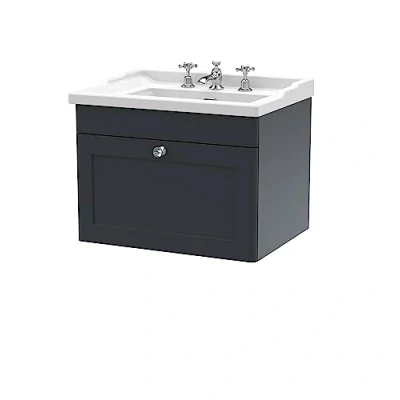 Nuie Classique Wall Hung 1 Drawer Vanity Unit with Traditional Basin 600mm Wide Satin Anthracite 3 Tap Hole