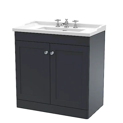 nuie CLC1426G Classique Floor Standing 2 Door Vanity Unit & 3 Tap Hole Ceramic Basin, 800mm, Satin Anthracite, Soft Black