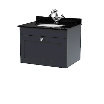 nuie CLC1494BR1 Classique Wall Hung 1 Drawer Unit & Tap Hole Marble Worktop with Round Basin, 600mm, Satin Anthracite, Soft Black