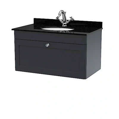 nuie CLC1496BR1 Classique Wall Hung 1 Drawer Unit & Tap Hole Marble Worktop with Round Basin, 800mm, Satin Anthracite, Soft Black