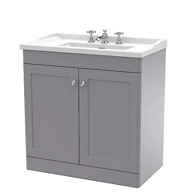 nuie CLC226G Classique Floor Standing 2 Door Vanity Unit & 3 Tap Hole Ceramic Basin, 800mm, Satin Grey