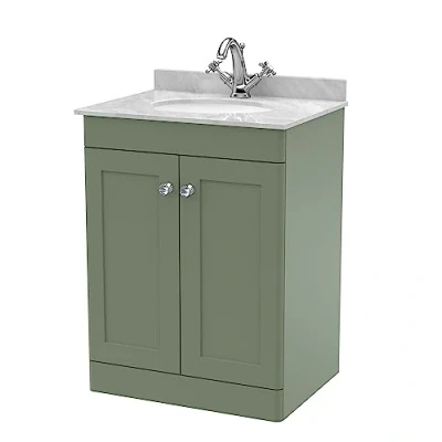 Eye catching and elegant, the Classique range of bathroom furniture from nuie combines Victorian inspired design with a contemporary twist. The traditional design is complemented in 5 modern colourways, with a large variety of different basins and worktops - to find the perfect unit for your bathroom. This floor standing vanity unit will endure as a much loved piece in your bathroom. With 2 soft close Shaker style doors and ample storage for the essentials to be kept tidily away. In a relaxing Satin Green finish with light Chrome handles. Supplied rigid for easier installation. With a 1 tap hole Marble top with high quality vitreous china ceramic white basin. Manufactured from high quality materials and manufactured to our highest standards. Matching furniture available in the Classique furniture range from nuie for a beautifully traditional design in your bathroom. Tap and waste not included. DIMENSIONS - H: 878mm, W: 620mm, D: 470mm 5 year manufacturer's guarantee, Weight: 85.539357656 Pounds, Manufacturer: nuie