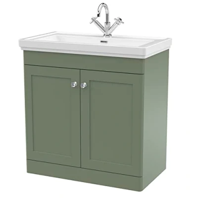 nuie CLC826A Classique Traditional Bathroom Floor Standing 2 Door Vanity Unit with 1 Tap Hole Fireclay Basin, 800mm, Satin Green