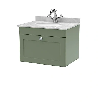 Eye catching and elegant, the Classique range of bathroom furniture from nuie combines Victorian inspired design with a contemporary twist. The traditional design is complemented in 5 modern colourways, with a large variety of different basins and worktops - to find the perfect unit for your bathroom. This space saving wall hung vanity unit will endure as a much loved piece in your bathroom. With 1 soft close Shaker style drawer and ample storage for the essentials to be kept tidily away. In a relaxing Satin Green finish with light Chrome handles. Supplied rigid for easier installation. With a 1 tap hole Marble top with high quality vitreous china ceramic white basin. Manufactured from high quality materials and manufactured to our highest standards. Matching furniture available in the Classique furniture range from nuie for a beautifully traditional design in your bathroom. Tap and waste not included. DIMENSIONS - H: 509mm, W: 620mm, D: 470mm 5 year manufacturer's guarantee, Weight: 71.65023515 Pounds, Manufacturer: nuie