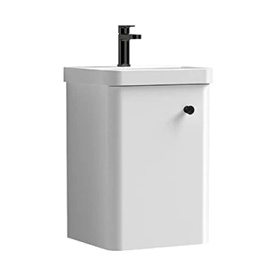 nuie COR1015 Core Modern Bathroom Furniture Bundle Wall Hung 1 Soft Close Door Vanity Basin Unit & Indented Round Knob Handle, 400mm, Gloss White/Matt Black