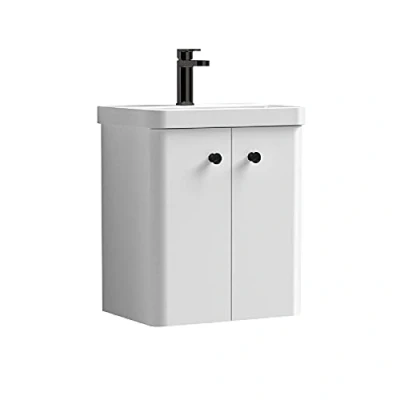 nuie COR1035 Core Modern Bathroom Furniture Bundle Wall Hung 2 Soft Close Door Vanity Basin Unit & Indented Round Knob Handle, 500mm, Gloss White/Matt Black