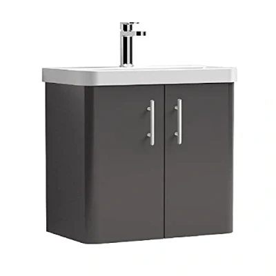 An eye-catching yet functional bathroom furniture unit, this Core furniture bundle from nuie combines the latest in furniture design with matching handles - to bring a unique and sleek unit to any sized bathroom. The space saving wall hung design of this vanity basin unit gives the impression of space within an ensuite or smaller bathroom, without compromising on ample and functional storage space; keeping your bathroom clutter free. The unit has a contemporary curved edge, creating a balance of organic and modern design. The unit is supplied rigid for ease of installation - no flat pack here! Manufactured from high quality MFC & MDF painted Gloss in a striking Grey finish. With soft close hinges on the 2 doors, preventing slamming and wear and tear - for a longer unit life. With a crisp white ceramic basin and an eye catching knurled bar handle in Satin Chrome. Tap not included in this bundle. Finish the look with matching brassware from nuie. DIMENSIONS - H: 589mm, W: 605mm, D: 355mm. HANDLE CENTRES: 96mm. 5 year manufacturer's guarantee., Weight: 60.62712205 Pounds, Manufacturer: nuie