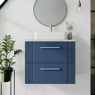 Nuie Deco Wall Hung 2 Drawer Vanity Unit with Bellato Grey Worktop 600mm Wide Satin Blue