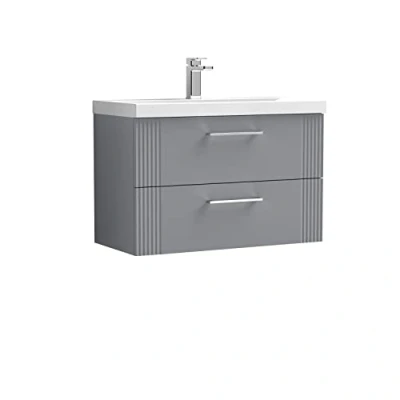 nuie DPF295A Deco Modern Bathroom Wall Hung 2 Drawer Part Fluted Vanity Unit with Mid Edge Ceramic Basin, Satin Grey