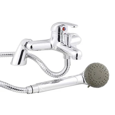 Nuie DTY304 Eon Modern Bathroom Single Lever Deck Mounted Bath Shower Mixer Tap with Handset, 175mm x 220mm, Chrome, 192mm 190mm, Set of 3 Pieces