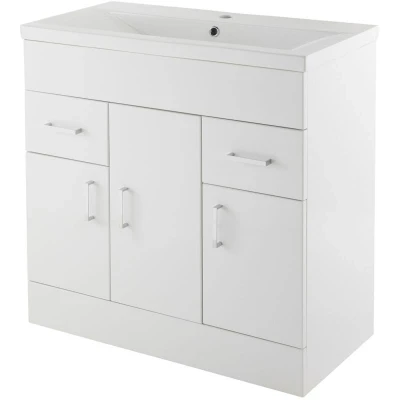 Nuie Eden Floor Standing 3 Door Vanity Unit and Basin 1 Gloss White 800mm Wide