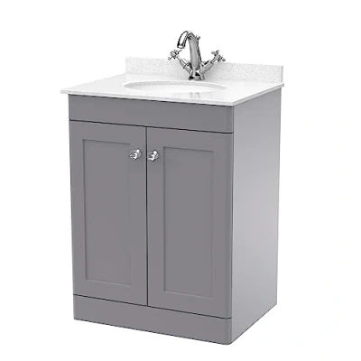 Eye catching and elegant, the Classique range of bathroom furniture from nuie combines Victorian inspired design with a contemporary twist. The traditional design is complemented in 5 modern colourways, with a large variety of different basins and worktops - to find the perfect unit for your bathroom. This floor standing vanity unit will endure as a much loved piece in your bathroom. With 2 soft close Shaker style doors and ample storage for the essentials to be kept tidily away. In a cool Satin Grey finish with light Chrome handles. Supplied rigid for easier installation. With a 1 tap hole Marble top with high quality vitreous china ceramic white basin. Manufactured from high quality materials and manufactured to our highest standards. Matching furniture available in the Classique furniture range from nuie for a beautifully traditional design in your bathroom. Tap and waste not included. DIMENSIONS - H: 878mm, W: 620mm, D: 470mm 5 year manufacturer's guarantee, Weight: 85.539357656 pounds, Manufacturer: nuie