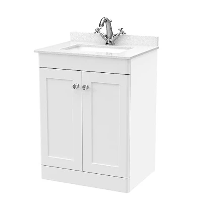 Eye catching and elegant, the Classique range of bathroom furniture from nuie combines Victorian inspired design with a contemporary twist. The traditional design is complemented in 5 modern colourways, with a large variety of different basins and worktops - to find the perfect unit for your bathroom. This floor standing vanity unit will endure as a much loved piece in your bathroom. With 2 soft close Shaker style doors and ample storage for the essentials to be kept tidily away. In a light Satin White finish with light Chrome handles. With a light White marble worktop. Supplied rigid for easier installation. With a 1 tap hole Marble top with high quality vitreous china ceramic white basin. Manufactured from high quality materials and manufactured to our highest standards. Matching furniture available in the Classique furniture range from nuie for a beautifully traditional design in your bathroom. Tap and waste not included. DIMENSIONS - H: 878mm, W: 620mm, D: 470mm 5 year manufacturer's guarantee, Weight: 85.539357656 Pounds, Manufacturer: nuie