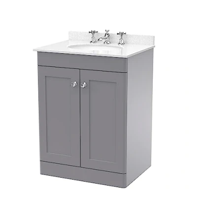 Eye catching and elegant, the Classique range of bathroom furniture from nuie combines Victorian inspired design with a contemporary twist. The traditional design is complemented in 5 modern colourways, with a large variety of different basins and worktops - to find the perfect unit for your bathroom. This floor standing vanity unit will endure as a much loved piece in your bathroom. With 2 soft close Shaker style doors and ample storage for the essentials to be kept tidily away. In a cool Satin Grey finish with light Chrome handles. Supplied rigid for easier installation. With a 3 tap hole Marble top with high quality vitreous china ceramic white basin. Manufactured from high quality materials and manufactured to our highest standards. Matching furniture available in the Classique furniture range from nuie for a beautifully traditional design in your bathroom. Tap and waste not included. DIMENSIONS - H: 878mm, W: 620mm, D: 470mm 5 year manufacturer's guarantee, Weight: 85.539357656 pounds, Manufacturer: nuie