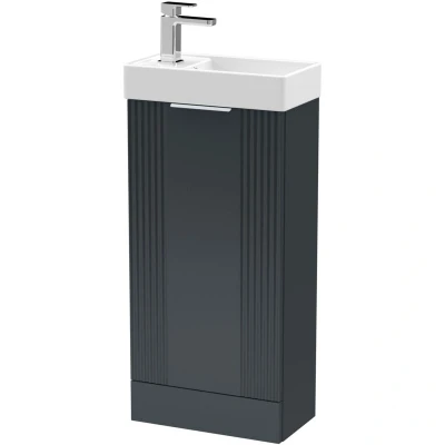 nuie FLT1420 Deco Modern Bathroom Floor Standing Part Fluted 1 Door Slimline Vanity Unit with Ceramic Basin, 400mm, Satin Anthracite