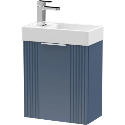 nuie FLT390 Deco Modern Bathroom Wall Hung Part Fluted 1 Door Slimline Vanity Unit with Ceramic Basin, 400mm, Satin Blue