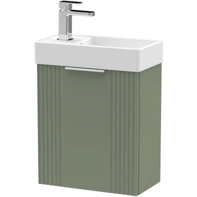 nuie FLT890 Deco Modern Bathroom Wall Hung Part Fluted 1 Door Slimline Vanity Unit with Ceramic Basin, 400mm, Satin Green