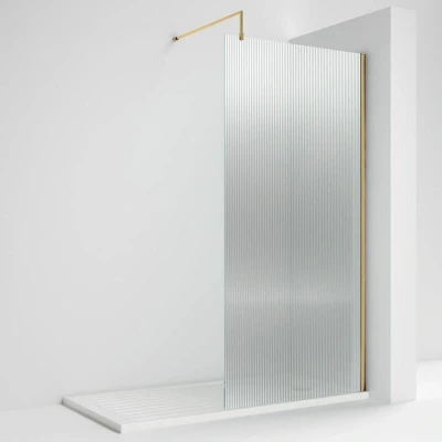 Nuie Fluted Wet Room Screen 1850mm High x 1000mm Wide with Support Bar 8mm Glass Brushed Brass