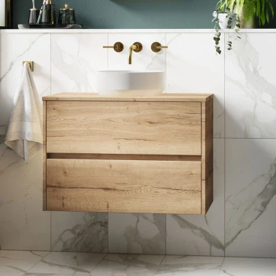 Nuie Havana Autumn Oak Woodgrain 800mm Wall Hung 2 Drawer Vanity Unit with Worktop HAV806W