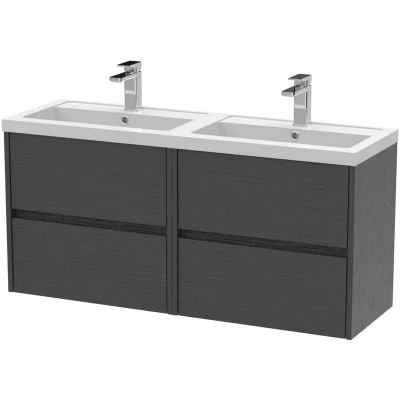 Nuie Havana Graphite Grey Woodgrain 1200mm Wall Hung 4 Drawer Vanity Unit with Double Poylymarble Basins HAV2204C