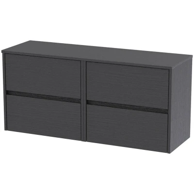 Nuie Havana Graphite Grey Woodgrain 1200mm Wall Hung 4 Drawer Vanity Unit with Worktop HAV2204W2