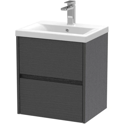 Nuie Havana Graphite Grey Woodgrain 500mm Wall Hung 2 Drawer Vanity Unit and Mid Edge Ceramic Basin HAV2202A