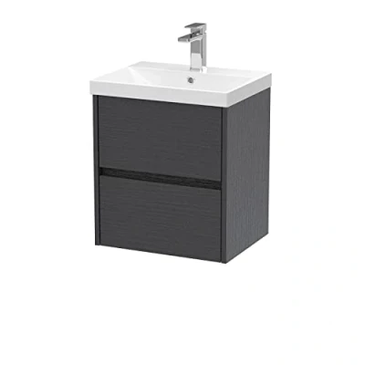 Nuie Havana Graphite Grey Woodgrain 500mm Wall Hung 2 Drawer Vanity Unit and Thin Edge Ceramic Basin HAV2202D