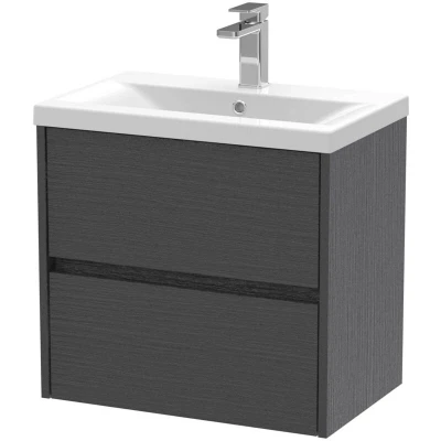Nuie Havana Graphite Grey Woodgrain 600mm Wall Hung 2 Drawer Vanity Unit and Mid Edge Ceramic Basin HAV2204A