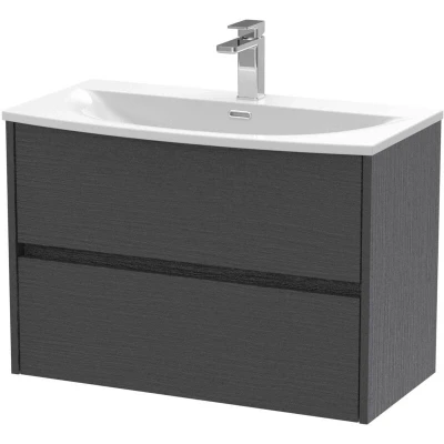 Nuie Havana Graphite Grey Woodgrain 800mm Wall Hung 2 Drawer Vanity Unit and Curved Ceramic Basin HAV2206G