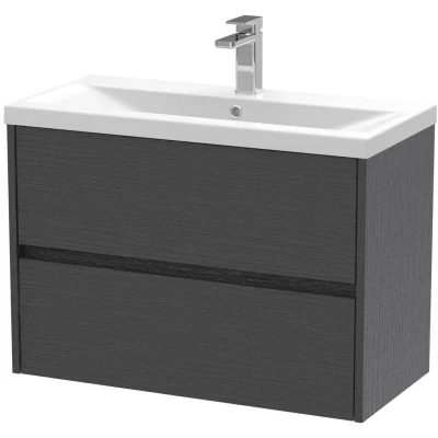 Nuie Havana Graphite Grey Woodgrain 800mm Wall Hung 2 Drawer Vanity Unit and Mid Edge Ceramic Basin HAV2206A