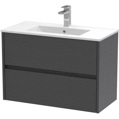 Nuie Havana Graphite Grey Woodgrain 800mm Wall Hung 2 Drawer Vanity Unit and Minimalist Ceramic Basin HAV2206B