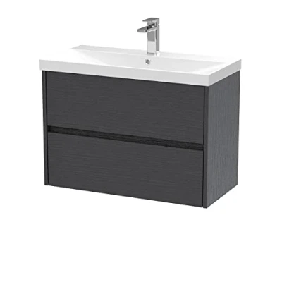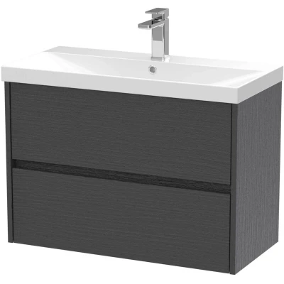 Nuie Havana Graphite Grey Woodgrain 800mm Wall Hung 2 Drawer Vanity Unit and Thin Edge Ceramic Basin HAV2206D