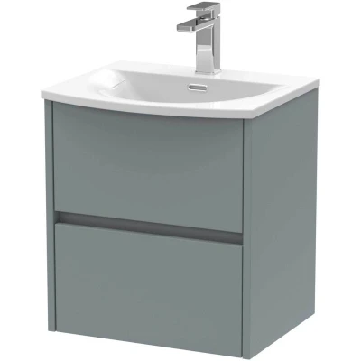 Nuie Havana Matt Coastal Grey 500mm Wall Hung 2 Drawer Vanity Unit and Curved Ceramic Basin HAV2302G
