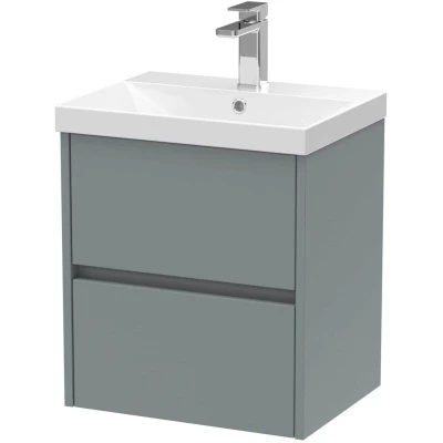 Nuie Havana Matt Coastal Grey 500mm Wall Hung 2 Drawer Vanity Unit and Thin Edge Ceramic Basin HAV2302D