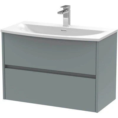 Nuie Havana Matt Coastal Grey 800mm Wall Hung 2 Drawer Vanity Unit and Curved Ceramic Basin HAV2306G