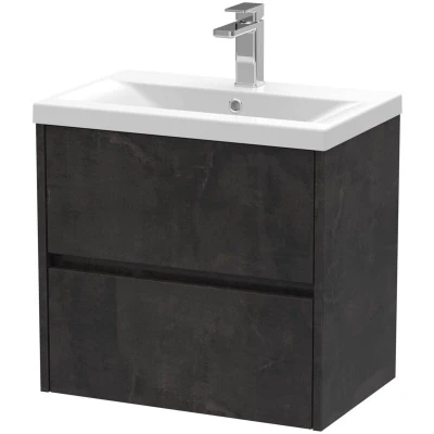 Nuie Havana Matt Metallic Slate 600mm Wall Hung 2 Drawer Vanity Unit and Mid Edge Ceramic Basin HAV2604A