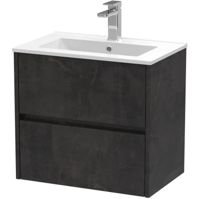 Nuie Havana Matt Metallic Slate 600mm Wall Hung 2 Drawer Vanity Unit and Minimalist Ceramic Basin HAV2604B