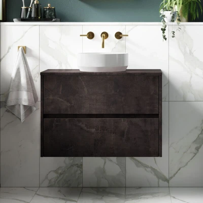 Nuie Havana Matt Metallic Slate 600mm Wall Hung 2 Drawer Vanity Unit with Worktop HAV2604W