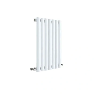 One of the most popular radiators on the market today, Hudson Reed's Revive model is defined by stylish oval tubes, offering a subtle step up from a typical panel radiator. The Revive is available in single panel (front set of tubes) or double panel (front and back sets of tubes) formats, with a curated set of sizes to suit most applications. Choose from gloss white or anthracite finishes. Features and Benefits: Modern designer radiator consisting of a single set of vertical oval tubes Each oval tube measures 50mm x 25mm - a large surface area that can achieve excellent heat outputs Size: Single - 600mm x 412mm Finished in gloss white (RAL 9016) Hardwearing mild steel construction Wall-mounted radiator - supplied complete with wall brackets and fixings Suitable for use with standard central heating systems 1/2" BSP connections CE and UKCA approvals Supplied with a 5 year guarantee from Hudson Reed Important Information: Radiator valves are sold separately Radiator Type Designer