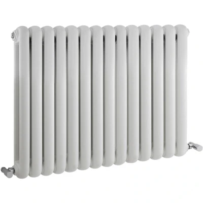 General description The Hudson Reed Salvia Double Designer Horizontal Radiator combines traditional design elements with a modern aesthetic. Featuring round-top sections and oval-shaped vertical column tubes, this radiator is available in a selection of sizes and finishes, including white and anthracite. It is designed for use in central heating systems. Technical specifications Radiator Type: Designer Radiator Configuration: Double Design: Column Tubes - Vertical Height: 635mm Width: 853mm Depth: 85mm Pipe Centres: 853mm + Valves Wall to Front: 130mm Output (Watts) @ Delta 50: 917 Output (BTU) @ Delta 50: 3129 Radiator Sections: 28 Material: Mild Steel Colour: Gloss White (RAL 9016) Weight: 26.6 Kg Manufacturer Part Number: HSA004 Compatibility and accessories Suitable for standard central heating systems Radiator valves are sold separately Installation Supplied complete with wall brackets, plug, air vent, and wall fixings All tappings are 1/2" British Standard Pipe Extra care must