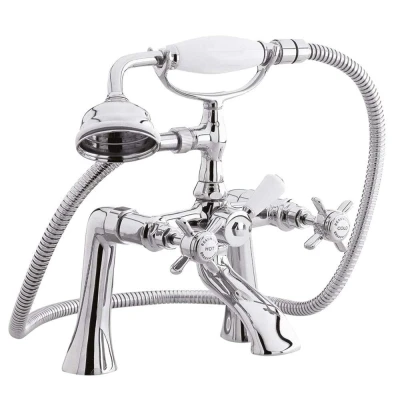 nuie I304X Beaumont Traditional Bathroom Crosshead Handle 1/2" Bath Shower Mixer Tap with Kit, 282 x 220 165mm , Chrome