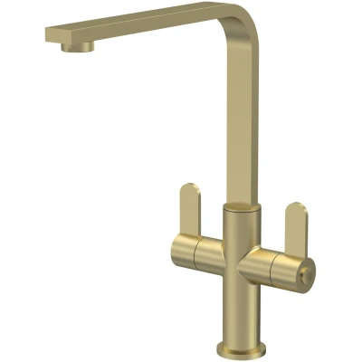 nuie KCH805DL Churni Mono Mixer Kitchen Tap with Dual Lever Handles, 302mm, Brushed Brass