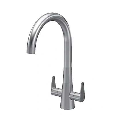 nuie KSA605DL Samir Mono Mixer Kitchen Tap with Dual Lever Handles, 398mm, Brushed Nickel